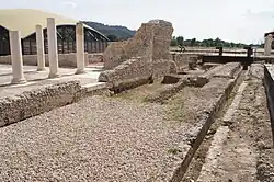 The monumental forum complex of the 3rd century included a basilica, a curia, baths and two porticos with numerous shops (tabernae).[10] It was built over an earlier forum and buildings from the 1st century.