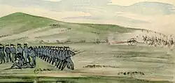 In 1867, Griffith Dickenson Compton led a group of 30 pioneers to the area. These families had traveled by wagon train south from Stockton, California, in search of ways to earn a living other than the rapid exhaustion of gold fields. Originally named Gibsonville, after one of the tract owners, it was later called Comptonville. However, to avoid confusion with the Camptonville located in Yuba County, the name was shortened to Compton.[9] Compton's earliest settlers were faced with terrible hardships as they farmed the land in bleak weather to get by with just the barest subsistence. The weather continued to be harsh, rainy and cold, and fuel was difficult to find. To gather firewood it was necessary to travel to mountains close to Pasadena. The round trip took almost a week. Many in the Compton party wanted to relocate to a friendlier climate and settle down, but as there were two general stores within traveling distance—one in the pueblo of Los Angeles, the other in Wilmington—they eventually decided to stay put.[9]