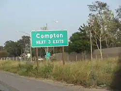 Compton is a city located in the Gateway Cities region of southern Los Angeles County, California, United States,[9] situated south of downtown Los Angeles. Compton is one of the oldest cities in the county, and on May 11, 1888, was the eighth city in Los Angeles County to incorporate. As of the 2020 census, the city had a total population of 95,740.[10] It is known as the "Hub City" due to its geographic centrality in Los Angeles County,[9] though it is actually near the southern end of the county. Neighborhoods in Compton include Sunny Cove, Leland, downtown Compton, and Richland Farms.