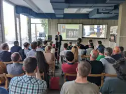 Located in the Šiška District of Ljubljana,[1] museum claims to host more than 6,500 collection items housed within its 700 m2 (7,500 sq ft) premises.[2] The museum also functions as a makerspace and an event space for festivals, film shoots, coworking, conferences, public presentations and meetups.[3] Educative workshops are organized, mostly for younger age groups, children from schools in Slovenia, Italy, and visitor groups from the region.[4] In 'open lab' series, workshops for museum staff are open to the public, such as the one where a replica of the Apple I computer was being assembled.[5]