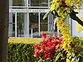 The Concert Hall Park is divided geographically in two separate sections. The main section between Frederiks Allé and the Concert Hall entrances is designed as a parterre garden. The more secluded northward section is fit in between the concert halls and the ARoS art museum on a steep slope, and includes an amphitheatre and outdoor stage. The Concert Hall Park and the adjacent City Hall Park is separated by the Frederiks Allé road and have very different designs. Whereas the City Hall Park has winding paths, dense growth and an organic, sort of haphazard, design, the Concert Hall Park has an ordered, tight expression with straight paths, cropped hedges and diagonal axis' mirroring planning and order. In the central areas where paths join there are a number of fountains and benches.[1]