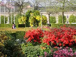 The Concert Hall Park (Danish: Musikhusparken or Musikhushaven) is a public park in central Aarhus, Denmark. The park is laid out in front of the Aarhus Concert Hall main entrances in the Indre By neighborhood of the inner city. It is bordered by the street Frederiks Allé to the east, Thomas Jensen's Allé to the south and Vester Allé to the north, behind the historic buildings of the former Vester Allés Barracks. The park is named after the Aarhus Concert Hall which is situated prominently immediately west of the park. The Concert Hall Park forms a center-point between some of the most prominent buildings in the city, the ARoS Aarhus Art Museum, Vester Allé Barracks, the concert halls, and Aarhus City Hall in view behind the City Hall Park across Frederiks Allé. The Concert Hall Park was designed by the landscape architect Sven Hansen as a parterre garden, and it was established in the 1980s.[1][2]