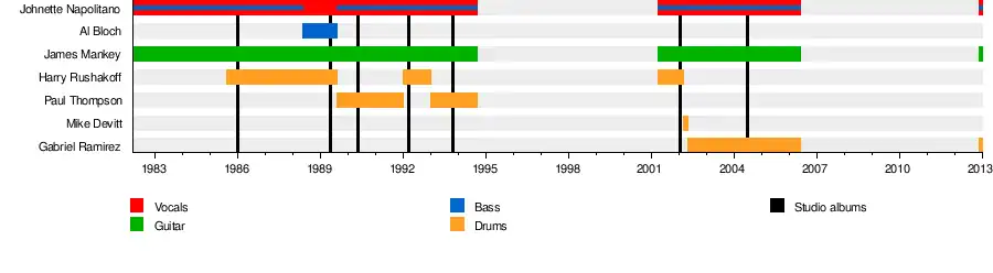- Johnette Napolitano – bass, vocals (1982–1994, 2001–2006, 2012)