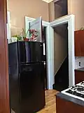 The interior features elaborate and extensive woodwork, quarter-sawn oak floors throughout the house, one of the longest cantilevered staircases on the East Coast of the United States, a large and ornate antique Eastlake-style chandelier in the dining room, and the only known existing installation of M.H. Birge & Sons block-printed peacock wallpaper ca. 1915. The home was constructed by the owners of Conklin Wagon Works, one of Olean's most important industries in the late 19th century. It was subsequently owned by the Mountain family, who operated the Mountain Clinic Infirmary, and is currently an owner-occupied single family residence not open to the public. On the morning of October 8, 2023 the house caught fire, resulting in the residents being displaced and a total loss of the historic interiors.[2]