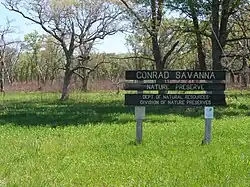 Conrad Savanna Nature Preserve is a 453-acre (183 ha) nature preserve located in Newton County, Indiana, 2.5 miles (4.0 km) south of Lake Village, just west of U.S. 41 on County Road 700 North. The savanna contains alternating rolling sand dunes and level areas. Typical of a savanna, it is covered by trees, grasses, and sedges. The dominant plants include Junegrass, Pennsylvania sedge, porcupine grass, little bluestem, Indian grass and big bluestem.[1] The preserve is managed as by the Indiana Department of Natural Resources (IDNR).
