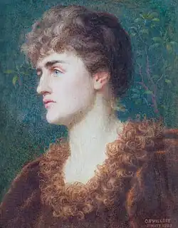 Phillott was born in Bloomsbury, London.[2] She was the second daughter of Arthur Phillott (1813–1853), a physician, and Frances Caroline Frend (1810–1912).[3] Her mother, who died aged 102, was the daughter of reformer William Frend. She had an older sister, Mary Agnes (1840–1921), who married John Robert Seeley in 1869, and a younger sister, Edith Frend Phillott (1852–1927).[4] She received her education at the Royal Academy schools, along with her cousin William Frend De Morgan and his later wife, Mary Evelyn Pickering. Phillott exhibited with a number of societies, including the Royal Academy and the Society of British Artists, and multiple galleries, such as the Grosvenor Gallery, and she was elected an associate of the Royal Society of Painters in Water Colours.[5] Constance declared her support for female suffrage and joined the London suffrage society in 1889.[6] There is no trace of her exhibiting after the 1880s, and it is unclear what happened to her at that time.[7] However, in 1891, she is listed in the census as a watercolour artist still, visiting a girls' school in Hampstead.[8]