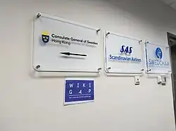 The Consulate General of Sweden in Hong Kong and Macau plays a central role in promoting and maintaining relations between Sweden and these regions. In addition to representing Sweden, one of its main goals is to build and strengthen ties between the countries, both on a political, economic, and cultural level. The Consulate General actively works on a variety of issues to promote Swedish interests, including marketing Swedish products, attracting investments to Sweden, promoting research and educational exchanges, as well as fostering cultural cooperation and Swedish tourism. Additionally, they have an important role in monitoring and reporting on the political and economic developments in Hong Kong and Macau to Sweden's Ministry for Foreign Affairs and the Government Offices. Another significant task for the Consulate General is to provide consular services to Swedish citizens living in Hong Kong, as well as temporarily visiting Swedes. This involves providing support and assistance in various situations, from emergencies to providing information and advice on local conditions.[19] The Consulate General, Business Sweden, and the Swedish Chamber of Commerce (SWEDCHAM) in Hong Kong have a closely intertwined relationship aimed at promoting Swedish interests and businesses in the region.[20]