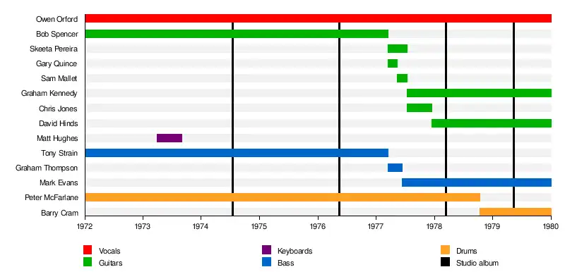 - Owen Orford – lead vocals (1972–1979)