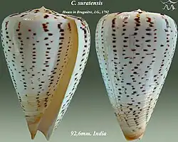 - ^ a b Conus suratensis Hwass in Bruguière, 1792. Retrieved through: World Register of Marine Species on 27 March 2010.