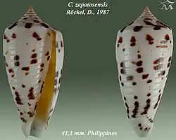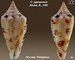 - ^ a b Conus zapatosensis Röckel, 1987. Retrieved through: World Register of Marine Species on 27 March 2010.