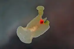 They possess shield shaped bodies with a rounded anterior and three caudal lobes, though the number may vary in mature individuals.[1] They may have an indentation on each side of the body near the anterior end. They usually are a few millimeters to a centimeter in length and under a millimeter thick. Though they have muscles throughout their body, they move using cilia to glide.