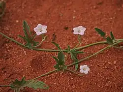 Convolvulus clementii commonly known as desert bindweed,[2]is a flowering plant in the family Convolvulaceae and grows in all states of mainland Australia. It is a trailing perennial with variable leaves and white or pink flowers.