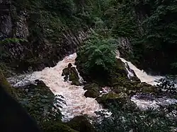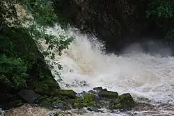 Conwy Falls (Welsh: Rhaeadr y Graig Lwyd) is a waterfall on the River Conwy at Bro Garmon in Conwy County Borough in Wales. The falls and surrounding area are a Site of Special Scientific Interest.[1] The nearby cafe, adjacent to the A5, is an interesting example of the work of the Welsh architect Clough Williams-Ellis, of Portmeirion fame.[2]