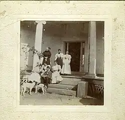 The house's floor plan in the shape of a Greek cross, with four equal wings extending from an octagonal core, is based on a published design by William H. Ranlett, The Architect (New York) 1847, Vol. I, Plate 32, published again in Godey's Lady's Book, January 1850; the Godey's Lady's Book engravings were framed and kept in the house.[4][5] The house is an "Anglo-Grecian Villa", built in the shape of a Greek cross between 1853 and 1855 by Peter and Columbia Stuart[6] Hairston. The builder Peter Wilson Hairston[7] a white Superior Court judge in North Carolina, who had inherited Cooleemee from his grandfather, was a central figure in Henry Wiencek's telling of the family's story.