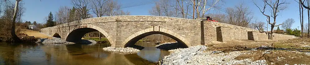 Before the construction of a bridge at this location, the site was known as Taylor's Ford. The original bridge at the site was probably timber, built about 1770, and funded by subscription. This was replaced by another wooden bridge in 1789. A petition to the Court of Chester County in 1804 complained of the decay of the bridge, and asked the county to erect a stone bridge instead. The bridge was built in 1807 and cost $26,911.03.[2][3] It continues to carry traffic today.[4]