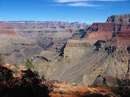 | Rock type(s) | Unknown?-prominence- (Temple Butte Formation?) Shinumo Quartzite Hakatai Shale? Bass Formation-(Bass Limestone) Vishnu Basement Rocks-(at Granite Gorge) |