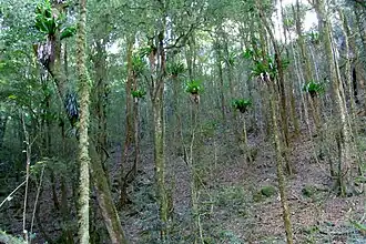 Bird's nest ferns growing on shatterwood trees at Copeland Tops | |