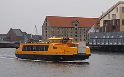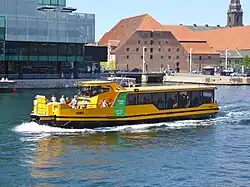 The Copenhagen Harbour Buses (Danish: Københavns Havnebusser) is a system of water buses along the harbourfront of Copenhagen, Denmark, operated by Movia which also operates the city’s regular buses. The system is notable for being all-electric, using battery-powered equipment which charge at night. There is also replenishment at station stops during the day. There are seven harbor buses, all belonging to the transport company Arriva, which were delivered from Damen Shipyards Kozle in Kędzierzyn-Koźle, Poland in 2020. Six of them are used in daily operations, but the seventh is a reserve. The Harbour Buses are integrated into the Copenhagen public transport system with the same payment system as buses, Metro or DSB trains.[1]