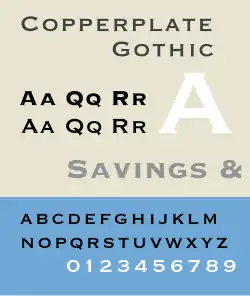 Copperplate Gothic is a typeface designed by Frederic W. Goudy and first produced by American Type Founders (ATF) beginning in 1901.