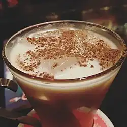 Coquito (lit. 'little coconut') is a traditional Christmas drink that originated in Puerto Rico. The coconut-based alcoholic beverage is similar to eggnog, and is sometimes referred to as Puerto Rican eggnog. The mixed drink is made with Puerto Rican rum, coconut milk, cream of coconut, sweetened condensed milk, vanilla, nutmeg, clove, and cinnamon.[1][2]
