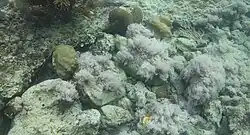 In 2017 Hurricanes Irma and Maria caused severe damage to the coral reefs in Florida and Puerto Rico, impacting ecosystem vulnerability and resilience.[18] Funding to assist coral restoration was provided by the NOAA's CRCP and partners including the National Fish and Wildlife Foundation and National Marine Fisheries Service. The program led efforts to assess the impact of the hurricanes on local coral reef ecosystems and restore damage. The funds were used towards research and assessment to collect data on the impact of the hurricanes on the reefs and other crucial information, vital for effective decision-making. It was found that overturned coral reefs in Puerto Rico appeared to have macroalgal overgrowth, as evident in the figure, as a result of stress from the 2017 hurricanes. Scientists are concerned with the rapid growth of this macroalgae, and such findings are vital for effective management decision-making for the coral reef ecosystem[19]