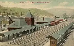 Coraopolis station is a disused train station in Coraopolis, Pennsylvania. The train station was built in 1896 [3] by the Pittsburgh and Lake Erie Railroad, and designed by architects Shepley, Rutan and Coolidge in Richardsonian Romanesque style.