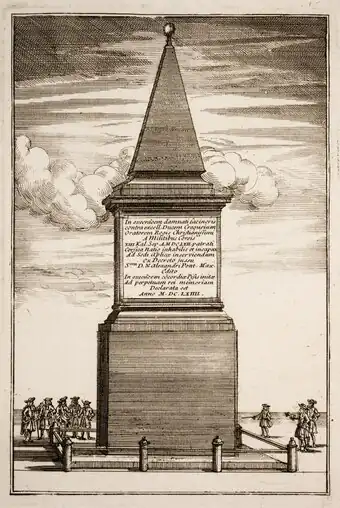 The incident was commemorated by a tapestry now on show at the château de Fontainebleau, a section of the ceiling of the Hall of Mirrors in Versailles, and a bronze medallion from a side lantern of the Louis XIV Victory Monument which is now kept at the Louvre.