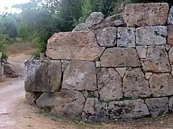 Temple A consisted of a terraced podium and was oriented southwest. It was roughly the same size as the Capitolium with its forecourt, measuring 43 x 28 meters. The polygonal masonry of its podium closely related to that of the town walls.[16]