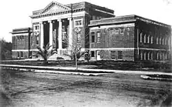 The first Chico High School on West First Street at the present site of the Meriam Library; photo from Meriam Library Special Collections