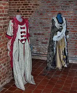 During the Late Middle Ages in Europe, dramatic enactments of Bible stories were prevalent, therefore actual Christian vestments, stylized from traditional Byzantine court dress, were worn as costumes to keep the performances as realistic as possible.[1] Stereotypical characterization was key when clothing performers for this style of theatre. In most instances actors had to supply their own costumes when playing a character found in daily life.[4]
