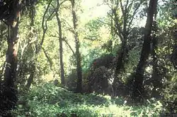 Threats to the trees include land-clearing, rodents and exotic grasses. The non-native grasses are more aggressive and produce more seed than the native perennials, which attracts seed-eaters like Botta's Pocket Gopher that also feed on acorns and oak seedlings.[12] Restoration includes breaching the levees, allowing floodwaters to scour out the non-native grasses, reduce rodent populations and deposit sediment. With the buildup of sand and sediments in the flooded areas, studies have shown an increase growth of cottonwoods and willows, which in turn trap more sediments during the next flood cycles.[13]