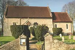 St. Mary's was rebuilt in the 13th century. It is a small building with only a nave, chancel and south porch. The porch is Early English Gothic and has a sundial. The east window of the chancel dates from about 1300. The Gothic Revival architect Charles Buckeridge restored the building in 1861[4] and the present font was added at the same time.[2] There is no bell tower but there is a belfry in the apex of the roof. The church had two bells in the 16th century.[2] These have not remained but the church now has two bells cast in 1710 and 1858 and a small 17th century sanctus bell. In the churchyard are the base and shaft of a medieval stone cross.[4] St. Mary's is a Grade II* listed building.[7]