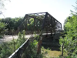 The Cottonwood River Pratt Truss Bridge is a historic bridge which carries Main Street across the Cottonwood River in Cedar Point, Kansas, USA. The single-span Pratt truss bridge was built in 1916 by the Missouri Valley Bridge and Iron Company. Locals proposed a bridge along a western extension of Main Street in 1914, but construction did not begin until late 1915 due to negotiations over its price; the county initially received no bids for the bridge after underestimating its cost, and it rejected every bid in the second round until the Missouri Valley Company dropped theirs to $8,750. The bridge is 142 feet (43 m) long, 17 feet (5.2 m) wide and is 32.5 feet (9.9 m) above the river. The Pratt truss design, with vertical and center-facing diagonal beams, was commonly used at the time due to its stability. The Cottonwood River bridge is one of roughly 800 examples of the type in Kansas.[2]