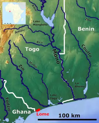 The Couffo or Kouffo is a river in West Africa. It rises in Togo but runs for much of its 125-kilometre (78 mi) course through Benin, draining into Lake Ahémé.[1] It forms part of the Togo–Benin border and also serves as the border between Benin's Kouffo and Zou departments.