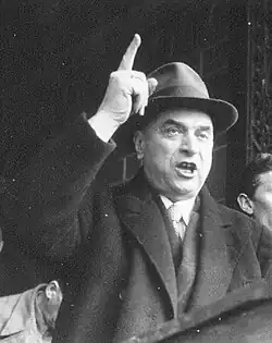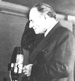On 29 August 1941, Nedić was installed as the prime minister following the resignation of the Commissioner Administration.[9] The Germans threatened to bring in Bulgarian troops to occupy the whole of Serbia, including Belgrade, if he did not accept.[10] Nedić agreed only after the Germans persuaded Kosta Pećanac to place himself and his detachments at the disposal of the occupation regime.[11] The regime was tolerated by a significant portion of the population and even enthusiastically supported by a part of the population and certain social strate, while it remained unpopular with a majority of the Serb people. Those who supported the regime came from the military class, the state bureaucracy, the Serbian intelligentsia and part of the general population.[12] The popularity of the regime in part of the population was downplayed in the post-war era both by Serb nationalists and the official Yugoslav discourse.[3] His first cabinet included fifteen members. The Germans were particularly impressed with his reputation as a man of authority, although the regime did not have any international standing even among the Axis powers. Although Heinrich Danckelmann, the Military Commander in Serbia, promised to give Nedić and his government a high degree of authority and independence, the deal was never written down, so the oral agreements were void after Danckelmann was replaced by General Franz Böhme. Although Turner attempted to convince Danckellmann's successors to grant the Government of National Salvation more power, his requests were ignored. They did allow him to organize a Serbian State Guard, unifying the Serbian gendarmerie and other formations.[13]