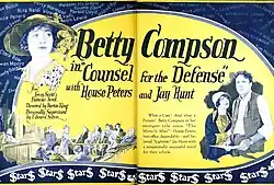 Counsel for the Defense is a 1925 American silent drama film directed by Burton L. King and starring Jay Hunt, Betty Compson, and House Peters. It is based on the 1912 novel of the same name by Leroy Scott.[1][2]