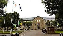 The main building, which was designed by George Wilkinson for use as the Tralee Union Workhouse, was completed in September 1842.[1] The workhouse infirmary evolved to become St Catherine's Hospital in the 1930s but, after the transfer of the patients to Tralee General Hospital, the St Catherine's Hospital closed in 1984.[2] The site was acquired by Kerry County Council, who had previously been based in the Ashe Memorial Hall, and the main hospital building was converted for use as the county council headquarters.[1] It officially opened in its new role in January 1989.[3]