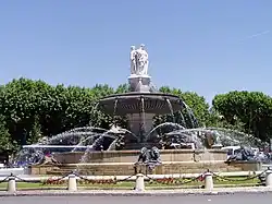 By 1696 four fountains had been built : Fontaine des 9 canons, Fontaine "Moussue, Fontaine du Roi René and, to the west, "les Chevaux-Marins", now vanished.
