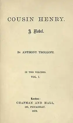 Cousin Henry is a novel by Anthony Trollope first published in 1879. The story deals with the trouble arising from the indecision of a squire in choosing an heir to his estate.