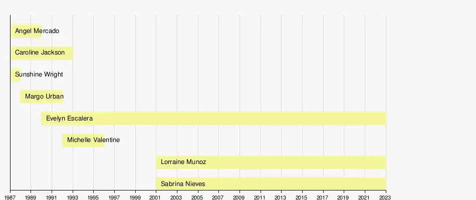 As of 2025, The Cover Girls are composed of Evelyn Escalera, Lorraine Munoz and Sabrina Nieves. Original lead singer Angel Mercado performs as The "original" Cover Girls alongside Margo Urban and Michelle Viana, who replaced Michelle Valentine in 2024.[1]