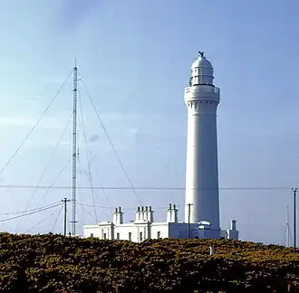 Following a storm in the Moray Firth in November 1826 when 16 vessels were sunk, applications were made for lighthouses at Tarbat Ness, on the opposite coast, and at Covesea Skerries. The Commissioners of Northern Light Houses (the precursor of the NLB) and Trinity House[4] felt that a lighthouse at Covesea was unnecessary but this was against public opinion. Many letters and petitions were delivered to them. Eventually, the engineer and a committee of the Board surveyed the coastline and the Elder Brethren[5] were asked to look for the best location. They recommended a lighthouse on the Craighead with a beacon on Halliman's Skerries, which the Commissioners agreed to. A grid iron tower was erected on the Halliman's Skerries in 1845, and in 1846, the Covesea Skerries Lighthouse was completed at a cost of £11,514 (equivalent to £1,408,378 as of 2023).[6]
