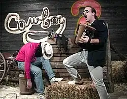 Cowboy Who? was an original 45 episode children's television series in Canada, which aired in a half-hour Sunday morning timeslot between 1990 and 1994 on the MCTV system.[1] The show was a collaboration between then radio producer Jeff Green and the children's theatre group Salt & Pepper Theatre Company. In 1987, the Salt & Pepper Theatre Company had written and performed an 8-part series of 30 minute children's radio programs for Ottawa album oriented rock station CHEZ-FM on which Green had acted as producer and engineer. In addition, the theatre group had been involved with CHRO-TV, supplying children's theatre workshops in schools throughout the Ottawa Valley. When the Salt & Pepper Theatre Company were offered a regular slot on the station to help fulfill its CRTC license commitments for original local children's programming, they approached Green to collaborate on a series. In 1990, the team produced a pilot for Cowboy Who?, which gained them a commitment for a season of 13 episodes, and primary shooting began in the fall of that year. Two and a half more seasons were eventually created. The show spent several years in rotation on the MCTV stations.