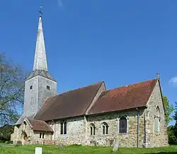 Parts of the parish straddle the Kent Water which forms the border with East Sussex and Surrey where the three counties meet. It is centred on the 13th-century church of St Mary Magdalene with its slender, wooden shingled spire, bomb-damaged during World War II and since re-shingled. The spire is barely perceptibly out of perpendicular, which gave rise to a rhyme:[6]