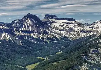 The first ascent of the summit was made August 16, 1929, by Henry Buchtel and party via the Southwest Chimney.[5] There is also an established climbing route on the North Face that was first climbed in August 1965 by Dick Yeatts, Mike Stults, Dick Guadagno, and Martin Etter.[6][7] The best approach is via the valley of West Fork Cimarron River.[8]