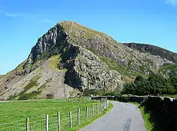 Craig yr Aderyn is an isolated hill in the county of Gwynedd, that juts out into the Dysynni Valley. It rises to a height of 258 metres (846 ft) above sea level on the south bank of the River Dysynni, near Llanfihangel-y-Pennant. The summit is rocky and the lower slopes are clad in tussocky grassland, heather and bracken.[3] The two prominent faces of the hill are known locally as 'Y Palis Mawr' and 'Y Palis Bach' (English: the large stockade and the small stockade).[4]