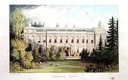 In 1814 the young Princess Charlotte, daughter of the Prince Regent (later George IV), was made a virtual prisoner at the Lodge.[2][3] George and her mother, Caroline of Brunswick, had long been estranged and his relationship with their daughter was little better. As was not unusual at the time, his solution was to marry off this problematic daughter as soon as possible. An engagement with William II of the Netherlands was made in 1814, but this was soon broken off. Charlotte became infatuated with the minor prince Augustus of Prussia, despite his being seen as below the station of a likely future Queen of the United Kingdom. The fact he was already married would have been its own hindrance too. In July 1814, George dismissed her loyal servants, expelled her from her previous home at Warwick House, and forced her to move to Cranbourne, with a staff of his choice.