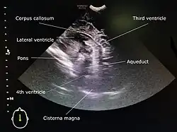 - ^ a b Gupta P, Sodhi KS, Saxena AK, Khandelwal N, Singhi P (2016). "Neonatal cranial sonography: A concise review for clinicians". Journal of Pediatric Neurosciences. 11 (1): 7–13. doi:10.4103/1817-1745.181261. PMC 4862295. PMID 27195026.