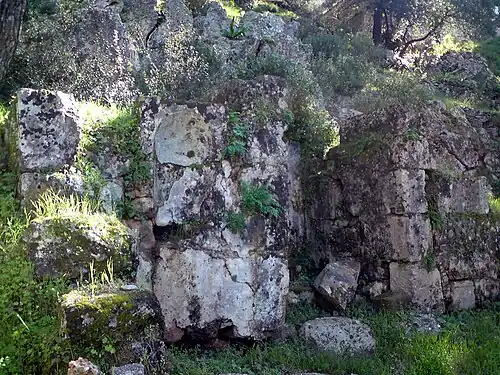 Its ruins are located near Argostoli.[8][9][10] William Martin Leake, who visited in the 19th century, remarks that "the walls of Cranii are among the best extant specimens of the military architecture of the Greeks, and a curious example of their attention to strength of position in preference to other conveniences; for nothing can be more rugged or forbidding than the greater part of the site. The enclosure, which was of a quadrilateral form, and little, if at all, less than three miles (5 km) in circumference, followed the crests of several rocky summits, surrounding an elevated hollow which falls to the south-western extremity of the gulf of Argostóli." The walls may be traced in nearly their whole circumference.[11]