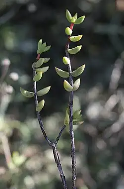 It can sometimes also be confused with the sympatric (but relatively unrelated) species Crassula tetragona or Crassula brevifolia.[4]