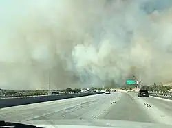 ![]() Image of smoke coming from the Creek Fire on December 5, as the fire approached Interstate 210. | |